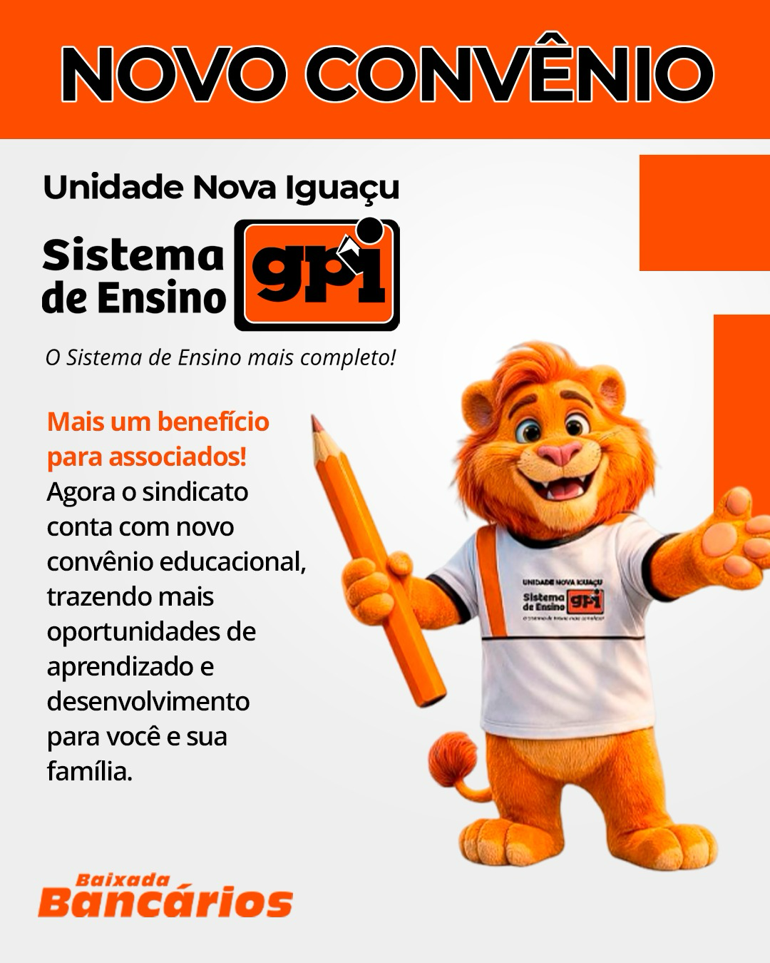 Pensando sempre em seus associados e associadas, o Sindicato dos Bancários da Baixada Fluminense acaba de fechar mais um convênio de excelência: Sistema de Ensino GPI - Unidade Nova Iguaçu.